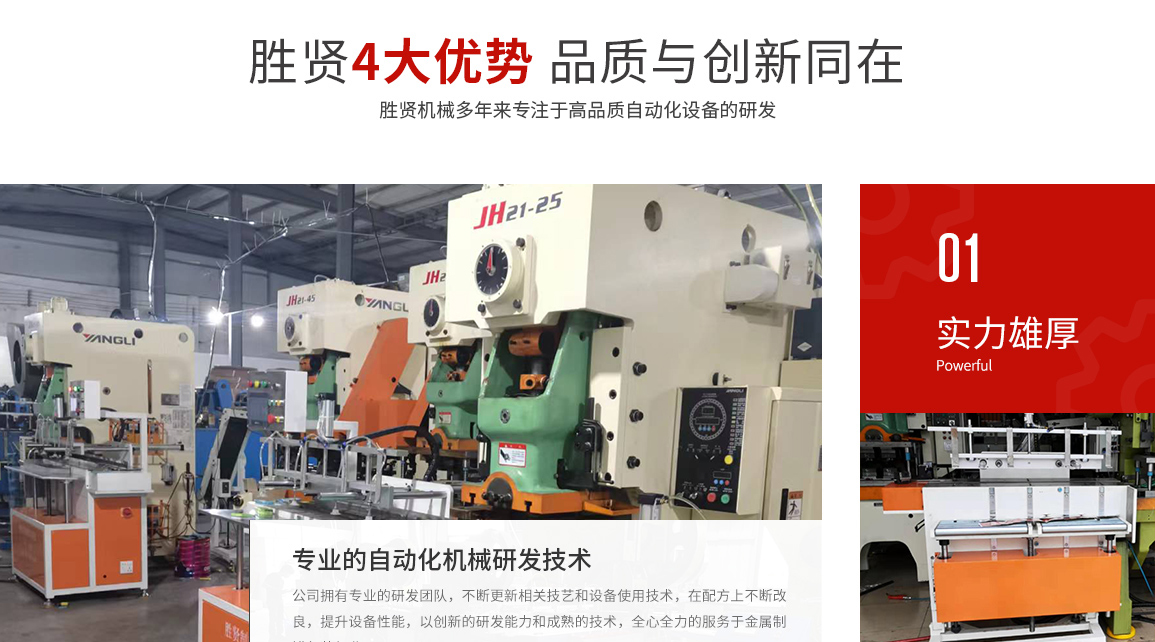 東莞市勝賢機(jī)械設(shè)備有限公司,是一家專業(yè)從事金屬制罐包裝行業(yè)的整套自動(dòng)化設(shè)備和模具開發(fā)、制造與銷售的公司,擁有成熟的技術(shù)和創(chuàng)新開發(fā)能力。我們擁有有一批多年從事設(shè)計(jì)、研究開發(fā)的工程師,和設(shè)備、模具制作的技術(shù)人才。不斷推進(jìn)制罐行業(yè)向高效、環(huán)保、節(jié)能、操作簡(jiǎn)易化的方向發(fā)展。